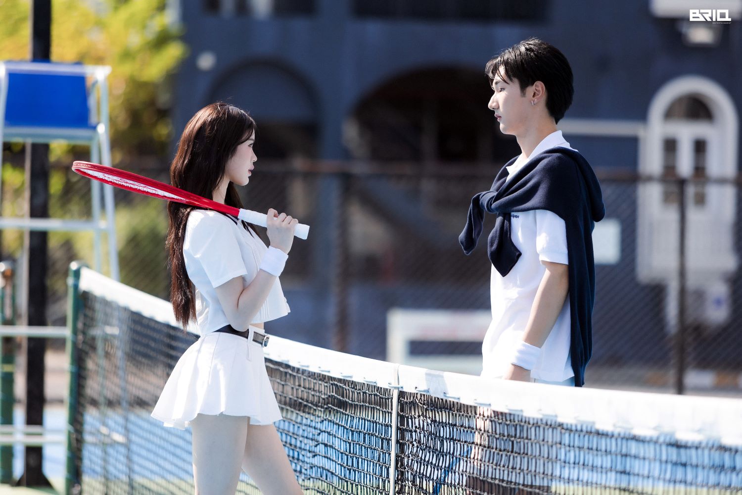The music video for ‘BREAK MY HEART’ employs the metaphor of a tennis match. A tennis ball symbolizes the feelings and hearts exchanged in this game of love, where both players compete until one eventually leaves the game. Interestingly, the term ‘love’ in tennis signifies zero points. This is where the phrase ‘Love Means Nothing in Tennis’ comes from.”