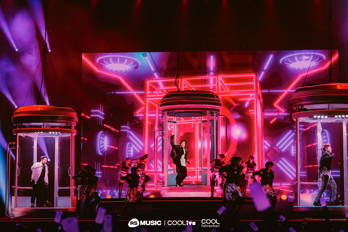 The enthralling experience began since the opening scene of the trio “D2B” in which they descended from above onto the stage in a dramatic capsule, complemented by the song “Never Change My Mind (Only You).” The hall was filled with impassioned cheering throughout the hall, followed by intense performances of “Fight with Fear” and “I Want You to Bite Me” further completed with a team of dancers and stunning fire effects.
