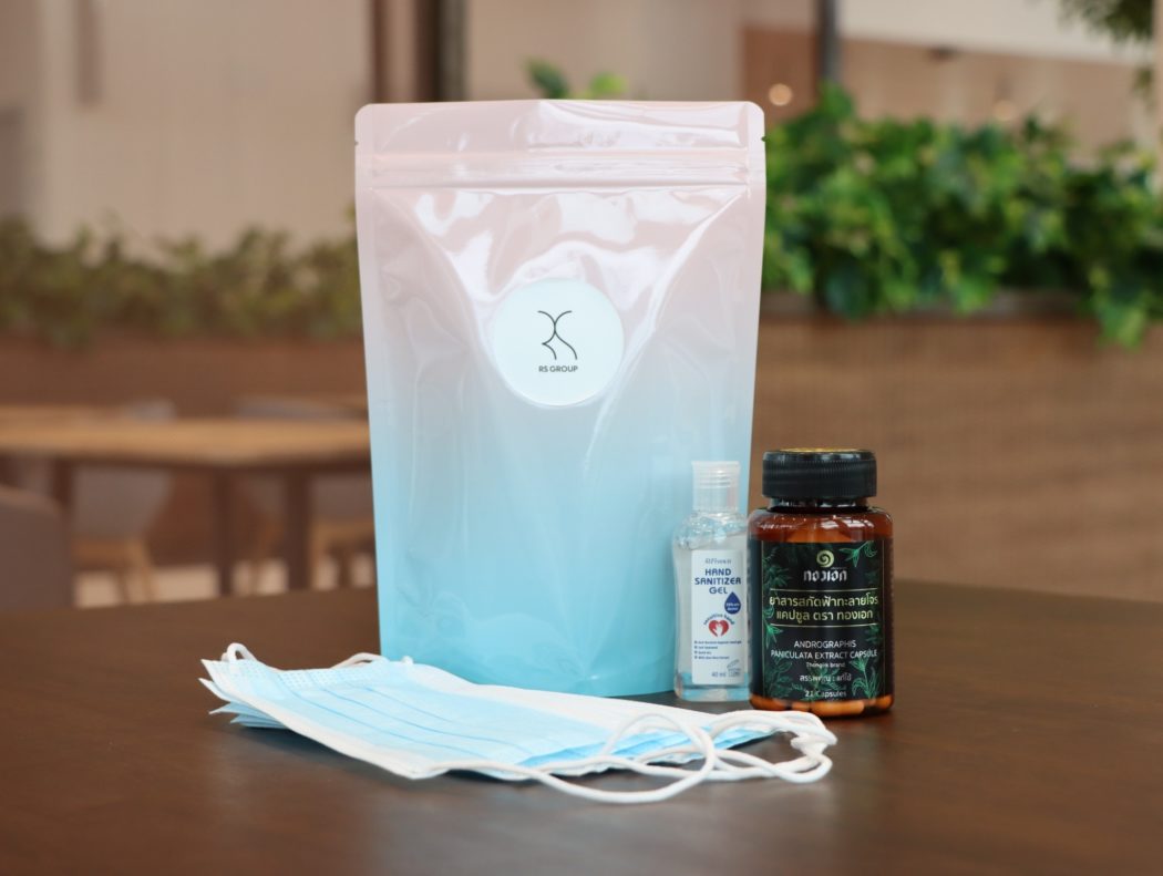 To continue making endless efforts to improve the quality of life of community members, RS Group, led by Mr. Wittawat Wetchabutsakorn, CFO of RS Group, and Mr. Chakrit Pichyangkul, MD of Life Star Co., Ltd., a subsidiary of RS Group, delivered face masks, hand sanitizer, and Thong EK’s Andrographis paniculata extract. Andrographis paniculata is a Thai traditional medicine. Produced with novel innovation by Lifestar, the product contains 300 mg of Andrographis paniculata in just one tablet, which is equivalent to 15,000 mg of powdered Andrographis paniculate. At Chatuchak District Office, Mr. Arit Srithong, Director of Chatuchak District, received face masks, hand sanitizer, and 1,000 sets of Andrographis paniculata extracts to distribute to the communities affected by the pandemic of COVID-19.