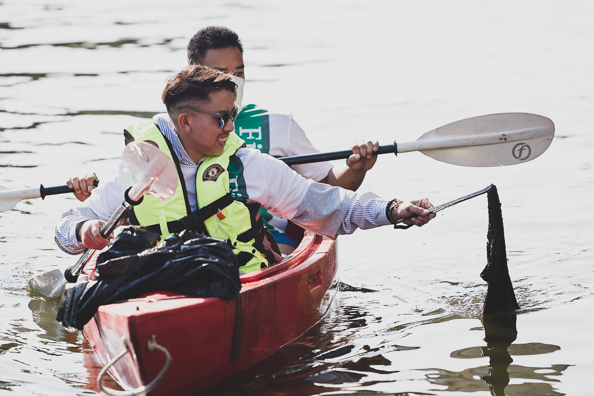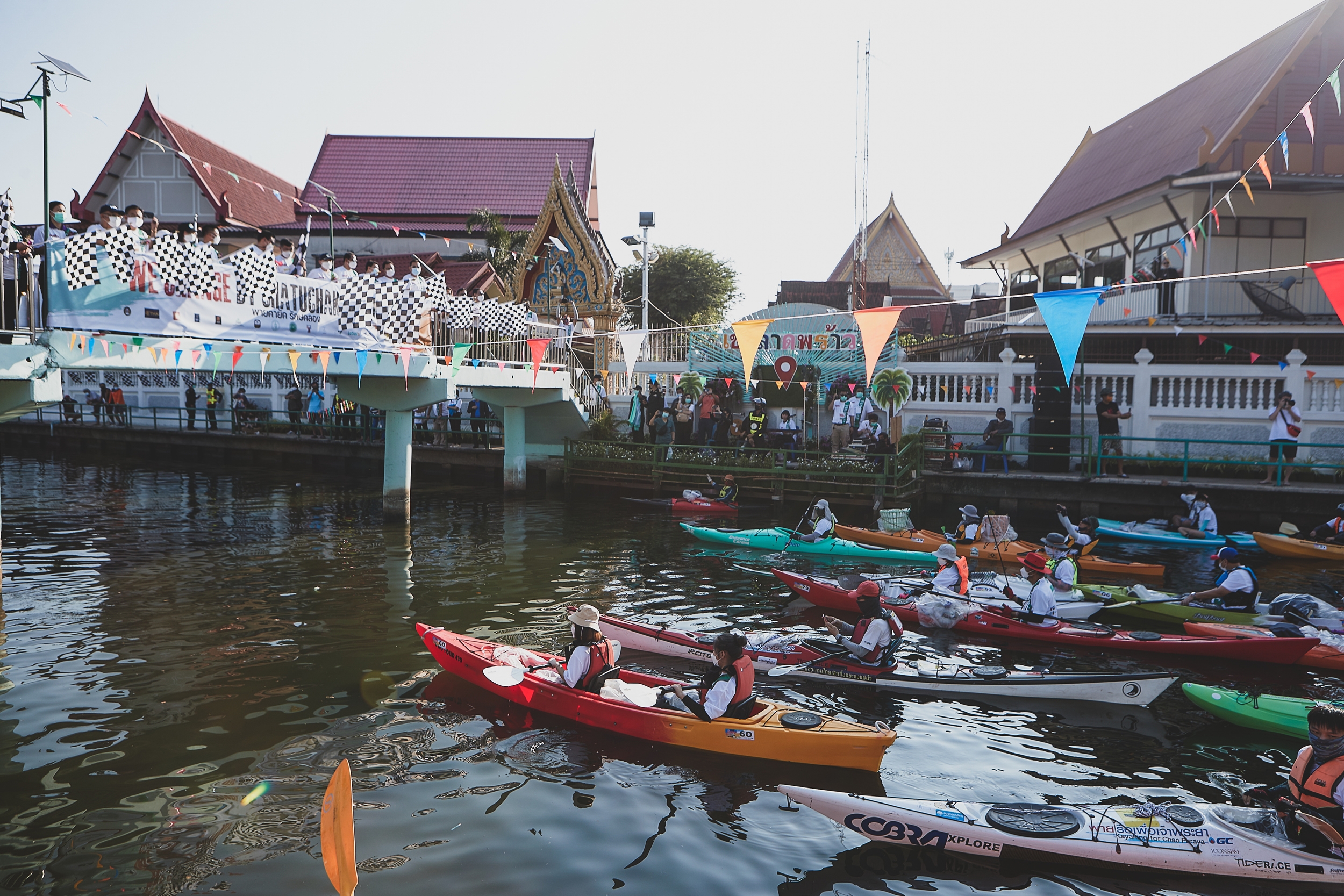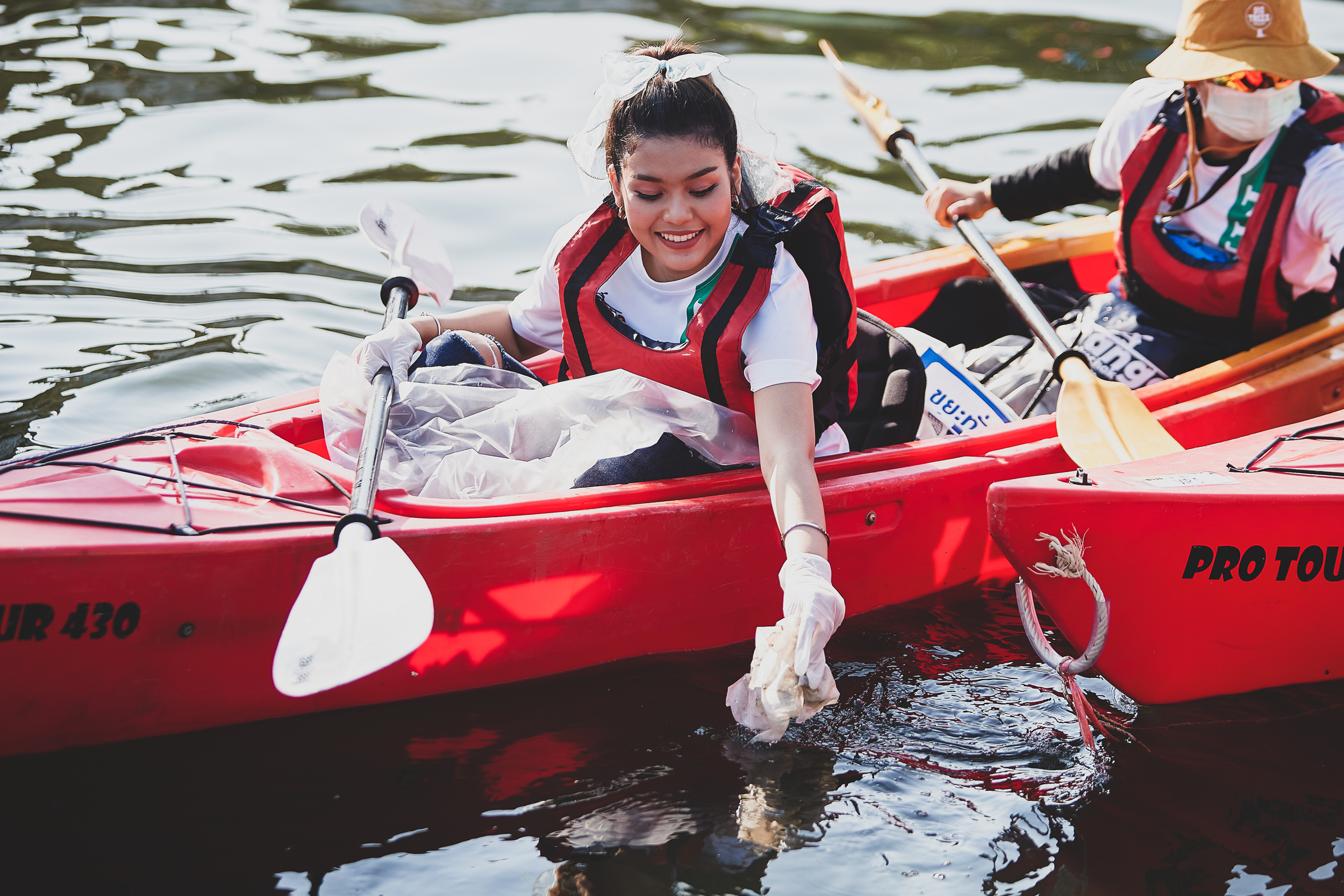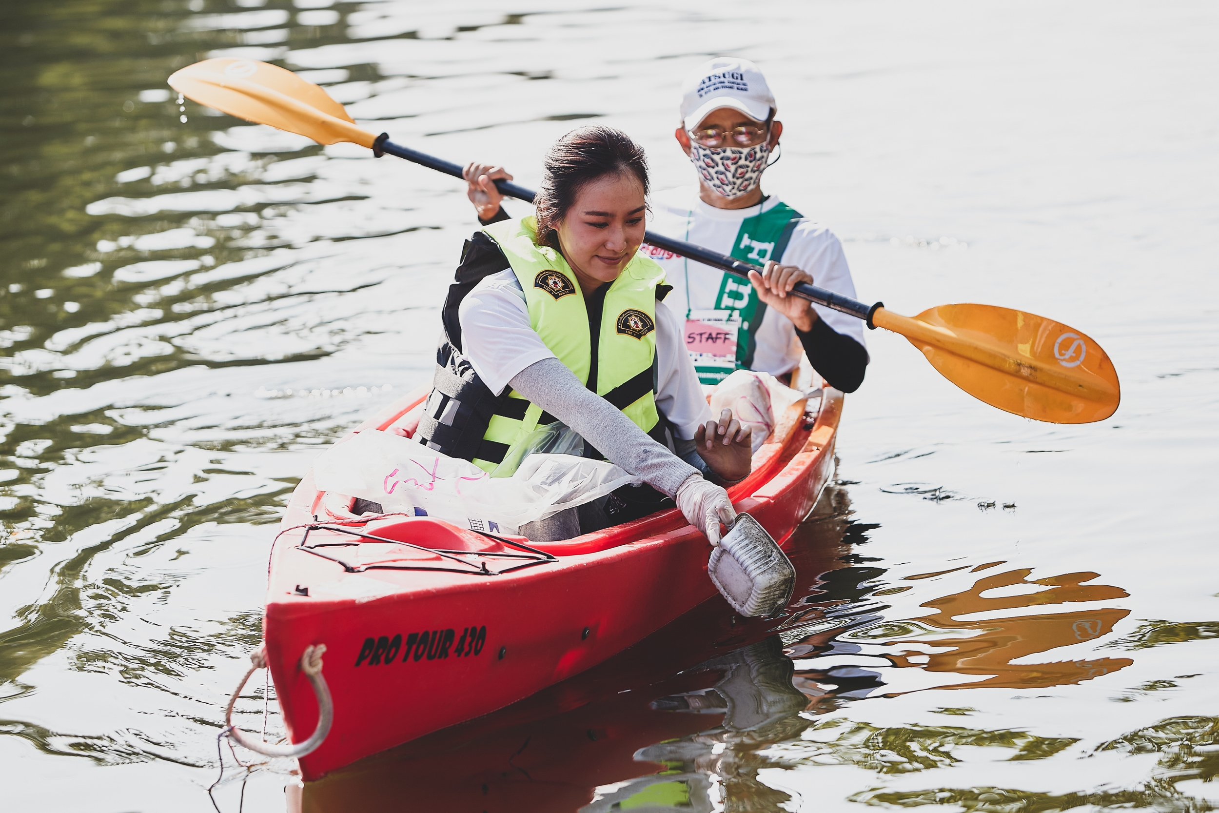 To promote participation of people’s networks, government organizations and the private sectors in the conservation and rehabilitation of canals in Chatuchak, to support the development of community-based tourism, and to stimulate local economy, RS Public Company Limited, or RS Group, led by Ms. Nithikan Chitcharoen, Director of Brand and Corporate Communications, has brought an army of celebrities such as Ohm-Thitiwat Ritprasert, Phum-Puriphan Subsangsawat, Tian-Atcharee Buakhiao, Ble Pathumrat R-Siam, and Thanya R-Siam to participate in “We Change by Chatuchak – Kayak Rak Khlong“- a garbage-collecting kayaking activity covering Lat Phrao Canal – Bang Khen Canal – Prem Prachakorn Canal. The campaign aims to restore waterways and highlight the unique aquatic landscape of Chatuchak area, while fosters awareness in the conservation and restoration of local water resources. The event is organized by Chatuchak District Office led by Mr. Sakolthee Phatthiyakul, Deputy Governor of Bangkok Metropolitan Administration, along with Mr. Khachit Chatchavanich, Permanent Secretary of Bangkok Metropolitan Administration, and Mr. Pornlert Penpas, Director of Chatuchak District.
