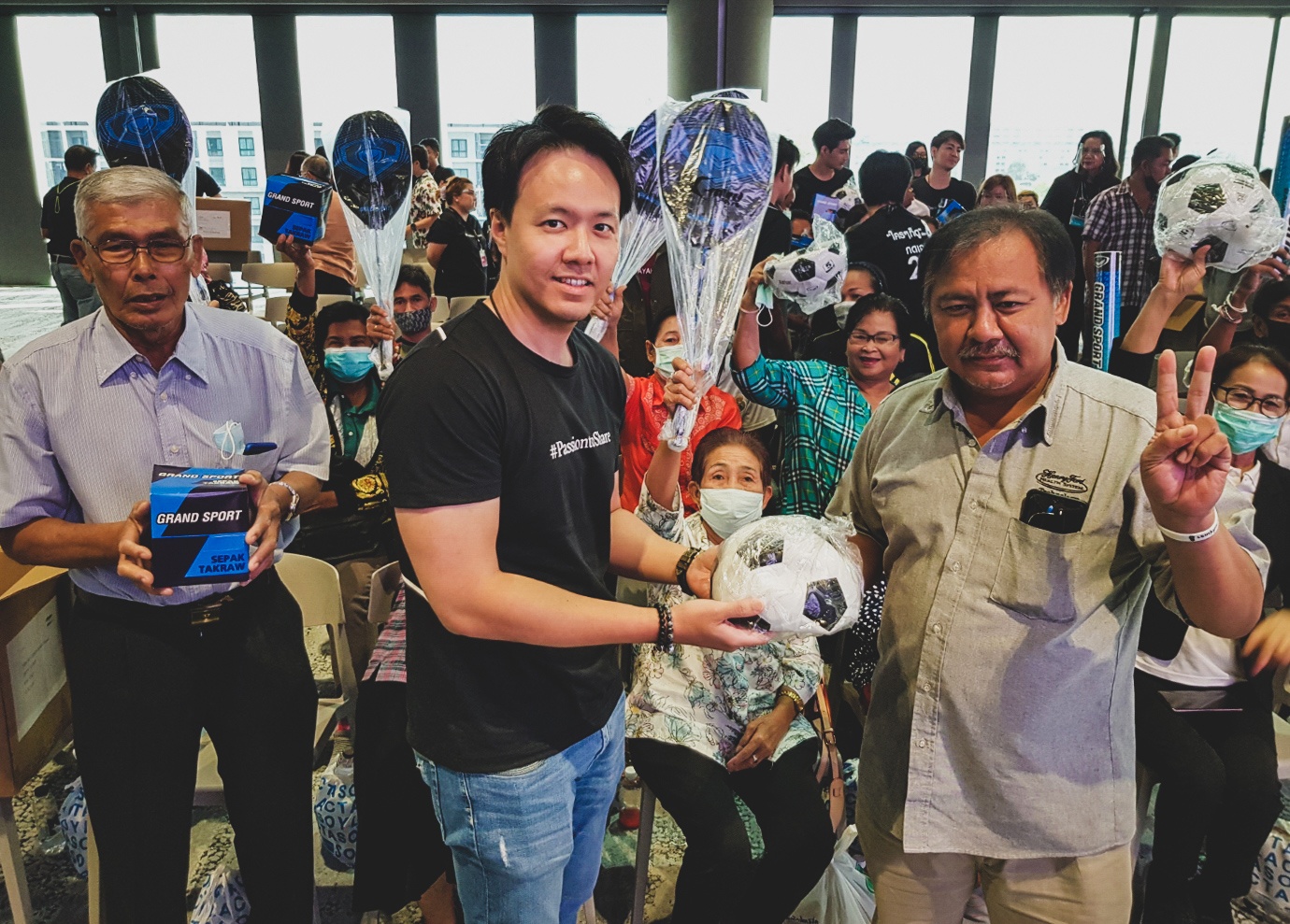 Apart from the knowledge and fun recreational activities, RS Group, together with Grand Sport Group donated sports gear such as footballs, Sepak Takraw, and badminton racket to the community to promote the physical wellbeing of the community members.