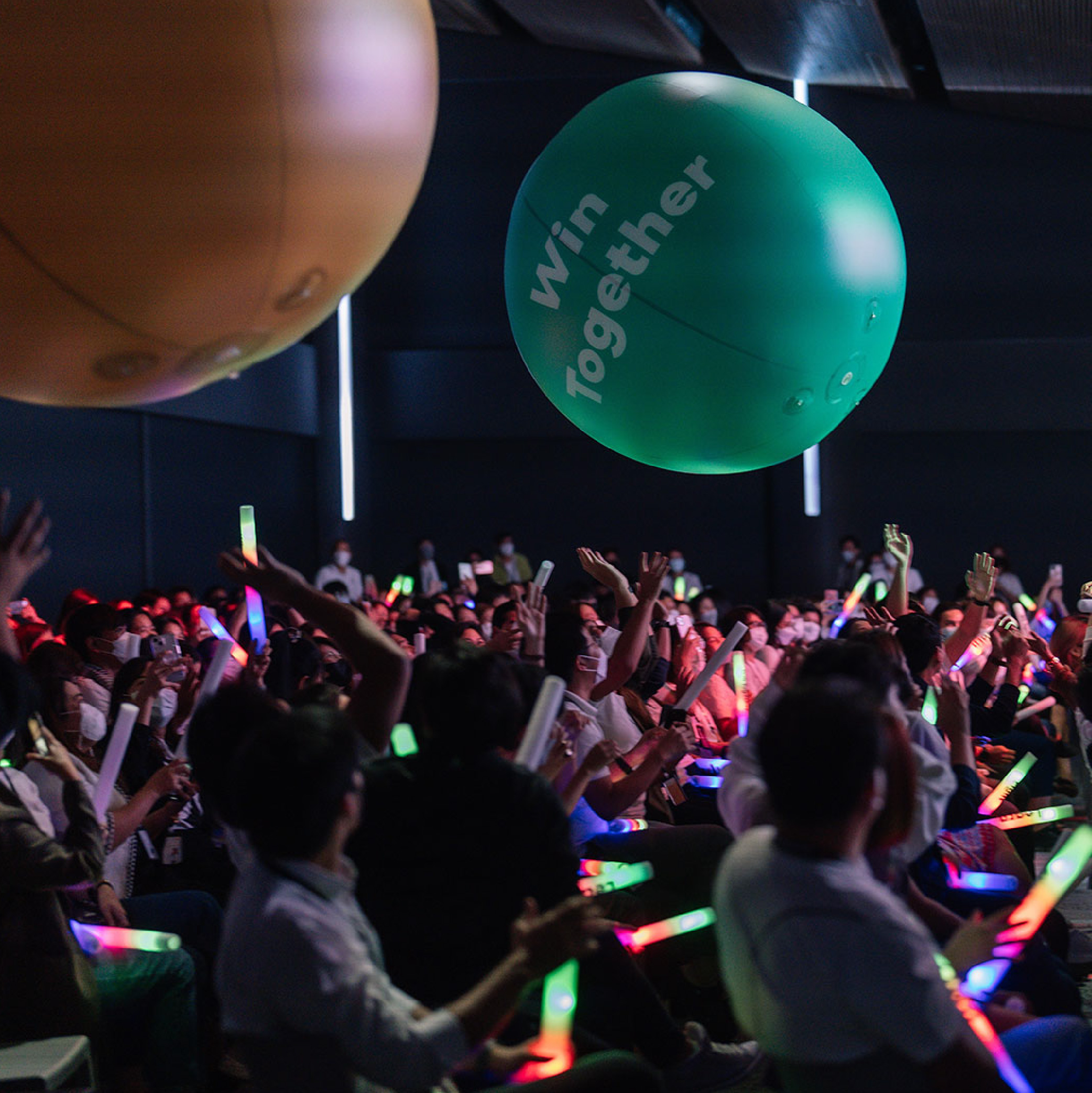 The event ended impressively with the RS Group boom to boast the power of RS employees and lively gimmicks of handheld LED sticks and giant balloons in the hall. The image represents the delivery of the new core values to all employees to guide their work and personal life to ultimately succeed and win together.