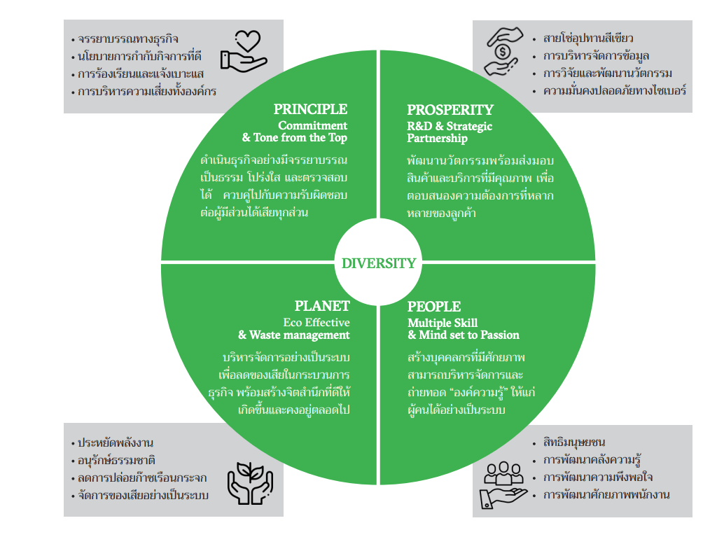 จากการที่ บริษัท อาร์เอส จำกัด (มหาชน) หรือ อาร์เอส กรุ๊ป มีความมุ่งมั่นที่จะดำเนินงานตามหลักการกำกับกิจการที่ดี เพื่อเป็นแกนหลักในการขับเคลื่อนให้ อาร์เอส กรุ๊ป พัฒนาได้อย่างยั่งยืน ด้วยเป้าหมายที่ชัดเจนคือ “การเติบโตอย่างสมดุล” ทั้งด้านเศรษฐกิจ สังคม และสิ่งแวดล้อม ผ่านการสร้างคุณค่าร่วมกันระหว่าง อาร์เอส กรุ๊ป และผู้มีส่วนได้เสียทุกส่วนตลอดห่วงโซ่ธุรกิจ ซึ่งมี “ความหลากหลาย” เป็นส่วนสำคัญที่เชื่อมเราไว้ด้วยกัน พร้อมผนวกการบริหารจัดการด้านความยั่งยืนให้สอดคล้องกับกลยุทธ์และกรอบการดำเนินงานที่ครอบคลุมทั้งในระยะสั้นและระยะยาว