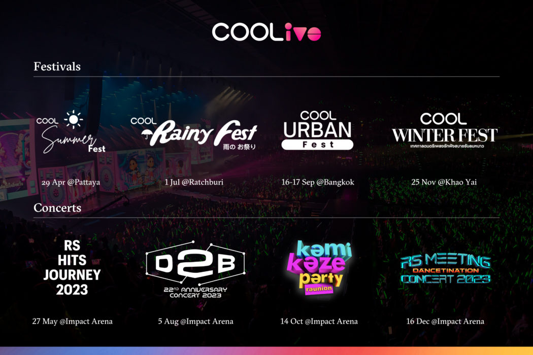 • COOLfahrenheit คลื่นวิทยุที่มีผู้ฟังสูงสุดมาอย่างยาวนาน จะเพิ่มคอนเทนต์ไลฟ์สไตล์ที่หลากหลาย ตอบโจทย์ทุกกลุ่มเป้าหมาย พร้อมมุ่งเน้นรักษาฐานผู้ฟัง โดยผู้ฟังสามารถเข้าถึง COOLfahrenheit ได้หลากหลายช่องทางทั้งคลื่น FM 93, แอปพลิเคชัน COOLISM และผ่านสตรีมมิง เช่น Joox, Siri, Apple Music, Google Home และ Google Assistant นอกจากนี้ ยังมีด้วยกิจกรรมโดนใจ อาทิ COOL Outing และ อิ๊งค์ Eat All Around ซึ่งเป็นกิจกรรมที่ได้รับการต้อนรับมาด้วยดีมาโดยตลอด ด้าน COOLive วางแผนจัด 4 คอนเสิร์ตใหญ่ ได้แก่ RS HITS JOURNEY 2023, D2B 22nd Anniversary Concert 2023, kamikaze party reunion และ RS MEETING HITS MARATHON CONCERT 2023 และ 4 เฟสติวัล ได้แก่ COOL Summer Fest, COOL Rainy Fest, COOL URBAN Fest และ COOL Winter Fest ตลอดทั้งปี