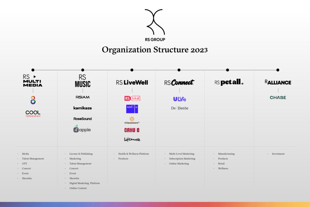 ทั้งนี้ โครงสร้างธุรกิจใหม่ของ อาร์เอส กรุ๊ป แบ่งได้เป็น 6 กลุ่มหลัก ดังนี้