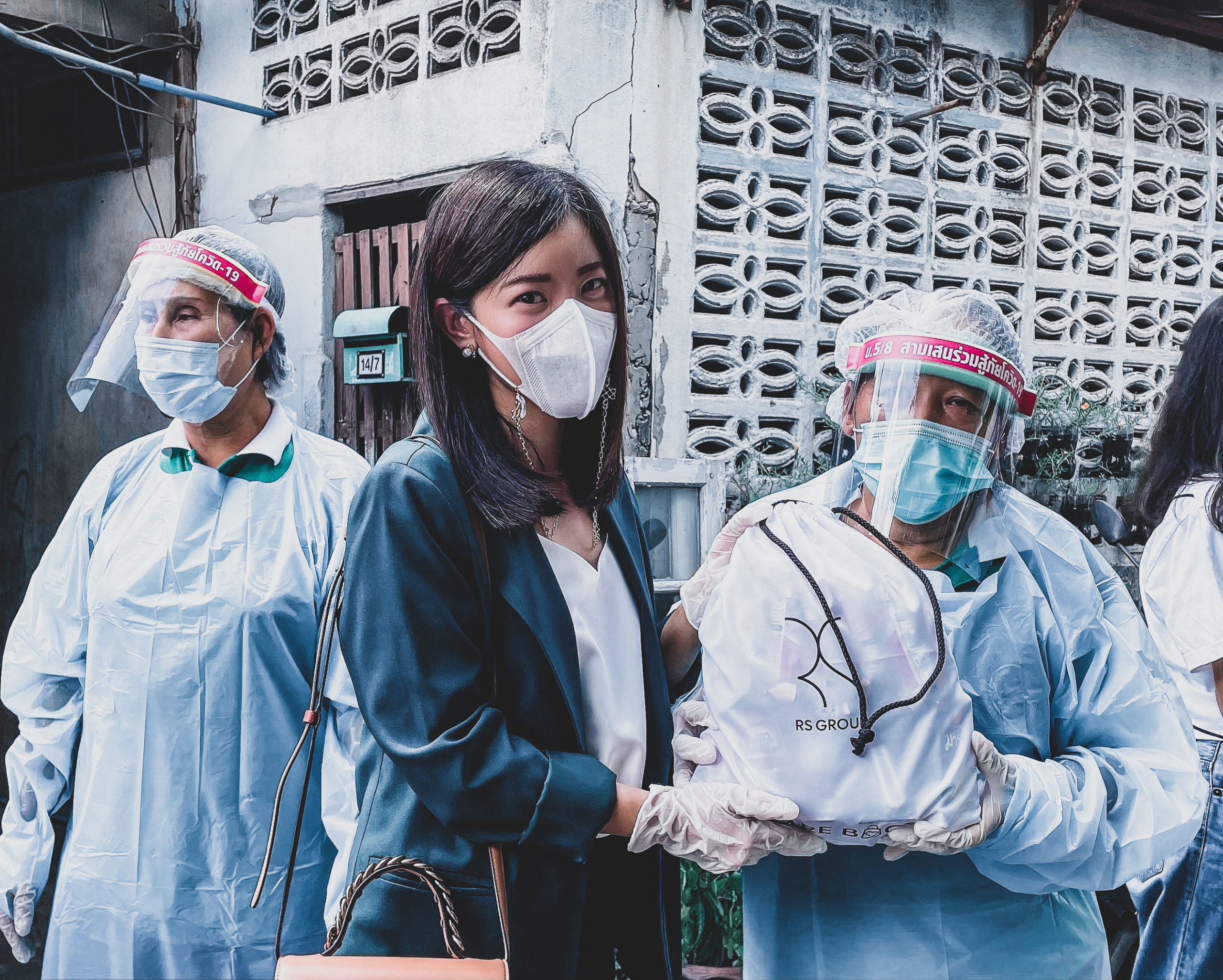 หลังจากโครงการบริจาค RS CARE BOX กล่องบรรจุยาและเวชภัณฑ์ ที่ได้ส่งมอบให้แก่กรมการแพทย์ในการช่วยเหลือผู้ป่วยโควิด-19 ที่ต้องรักษาตัวที่บ้านแล้ว บริษัท อาร์เอส จำกัด (มหาชน) หรือ อาร์เอส กรุ๊ป ยังคงดำเนินโครงการช่วยเหลือชุมชนอย่างต่อเนื่อง โดยครั้งนี้ คุณนิธิกานต์ จิตเจริญ ผู้อำนวยการสายงานภาพลักษณ์และสื่อสารองค์กร พร้อมด้วยพนักงานจิตอาสา ได้ทำการส่งมอบ RS CARE BAG ถุงบรรจุสิ่งของอุปโภคบริโภคที่จำเป็นให้แก่ชาวชุมชนในเขตจตุจักร เพื่อแทนความห่วงใยและบรรเทาความเดือดร้อนให้กับชาวชุมชนที่ต้องรักษาตัวที่บ้านและประสบปัญหาจากโควิด-19 ที่มีการแพร่ระบาดอย่างหนักในขณะนี้