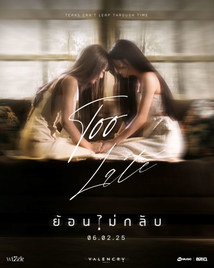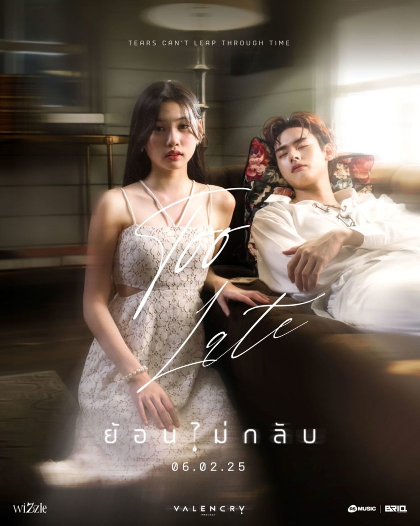 โดยประเดิมมุมช้ำในเพลงแรก ‘ย้อนไม่กลับ (Too late)’ กับมิวสิควิดีโอแนวพีเรียดไซไฟดราม่า ที่หยดน้ำตาเดินทางผ่านห้วงเวลา และความเสียใจ ในเรื่องราวของห้าสาวปริศนาจากโลกคู่ขนาน ที่ปรากฏกายบนโลกมนุษย์ ในขณะที่เกิดสุริยุปราคาเต็มดวง พวกเธอพบกับชายหนุ่มนักเขียนผู้อ่อนโยน ซึ่งรับบทโดย ‘เน-ณรัณ วิกัยรุ่งโรจน์ หรือ NAY PERSES’ ที่มาสอนเรื่องราวต่าง ๆ บนโลกที่เธอไม่คุ้นเคย โดยห้าสาว ‘Wizzle’ เผยว่า